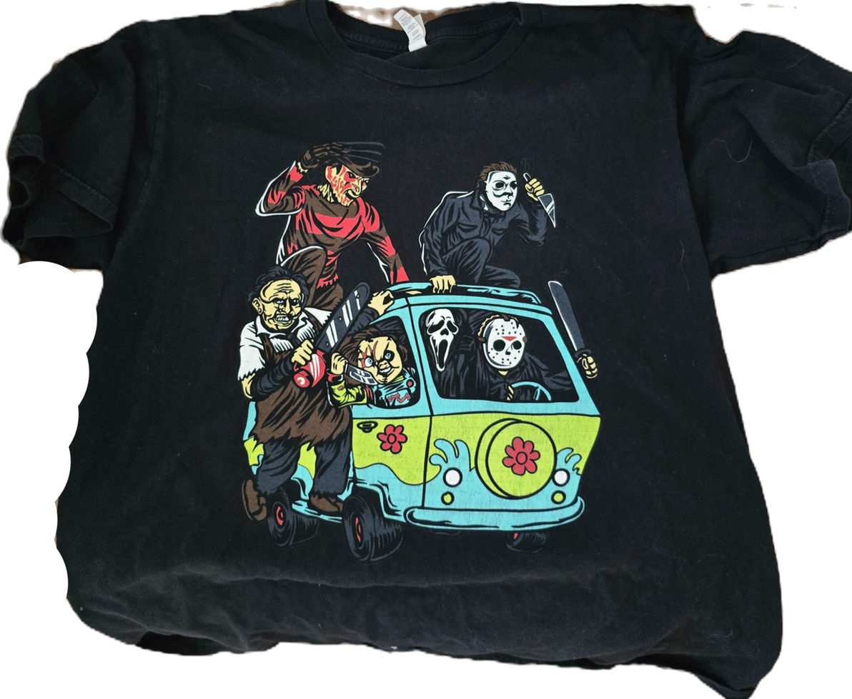 All shirts are custom made to order and custom printed to order. Therefore, no refunds or returns will be given or accepted. All sales are final. T-Shirt sizing is accurate so please order your correct size. Exchanges for size only may be accepted only if we have enough shirt blanks remaining and available. Send an email referencing your order information to support@HorrorGangShirts.com for assistance.